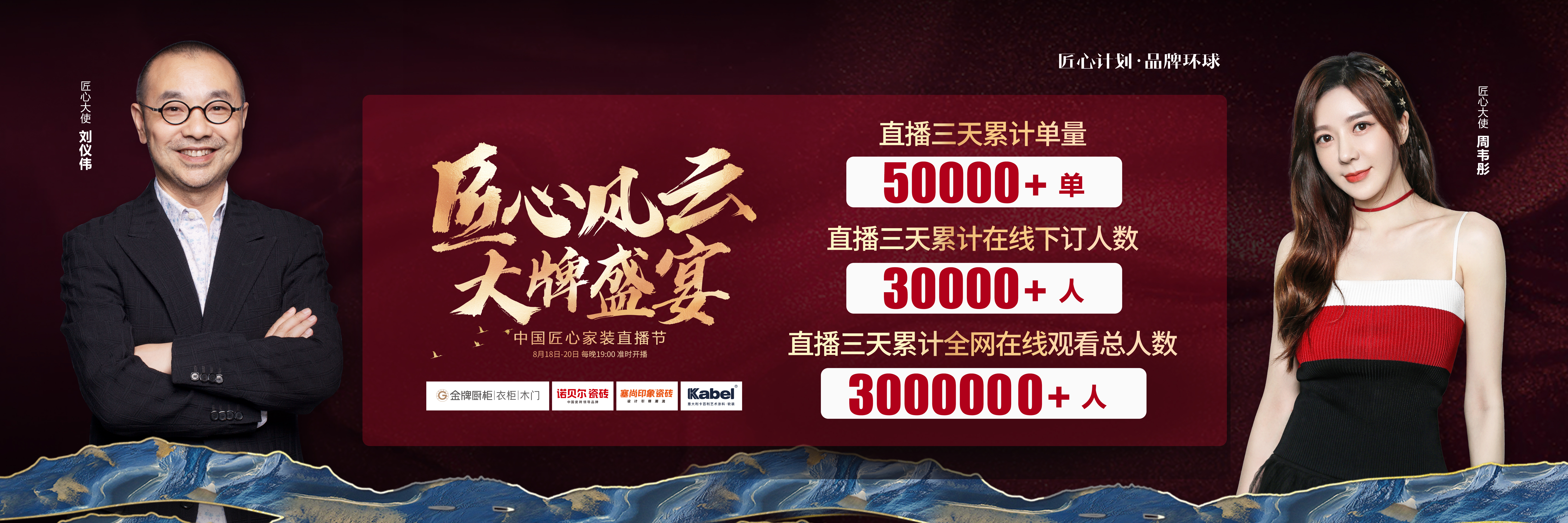 由1xBET厨柜、诺贝尔瓷砖、塞尚印象瓷砖、卡百利艺术涂料联合缔造,创赢科技系统支持全案营销执行的“匠心风云 大牌盛宴”中国匠心家装直播节于8月20日圆满落...